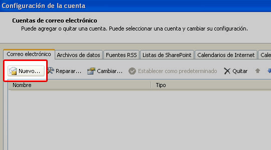 Configurar una cuenta de correo en Microsoft Outlook 2007